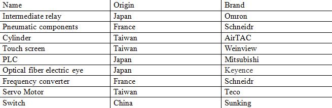 2) ਨੈਯੂਮੈਟਿਕ ਪਾਰਟਸ, ਇਲੈਕਟ੍ਰਿਕ ਪਾਰਟਸ ਅਤੇ ਆਪ੍ਰੇਸ਼ਨ ਪਾਰਟਸ ਵਿਚ ਐਡਵਾਂਸਡ ਵਰਲਡ ਮਸ਼ਹੂਰ ਬ੍ਰਾਂਡ ਕੰਪੋਨੈਂਟਸ ਨੂੰ ਅਪਣਾਉਣਾ.